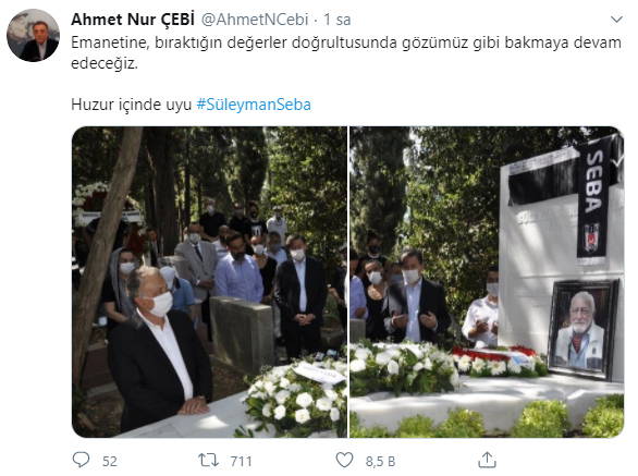 Törenden sonra Beşiktaş Kulübü Başkanı Ahmet Nur Çebi, kendisine ait twitter hesabından #SüleymanSeba etiketiyle "Emanetine, bıraktığın değerler doğrultusunda gözümüz gibi bakmaya devam edeceğiz. Huzur içinde uyu" mesajını paylaştı.