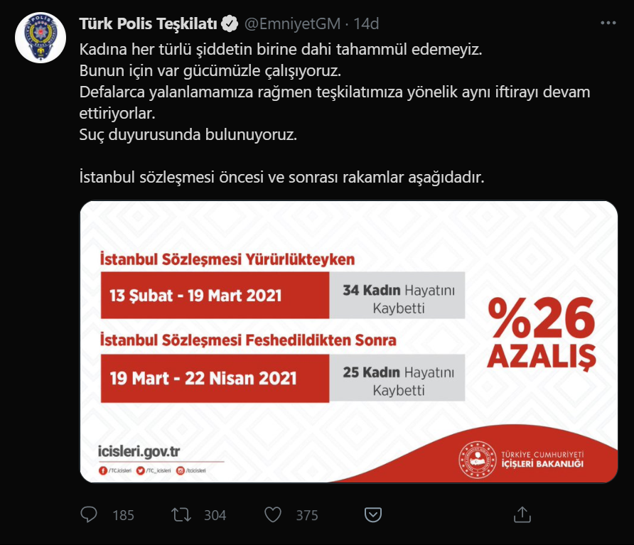İstanbul sözleşmesi öncesi ve sonrası rakamlar aşağıdadır."