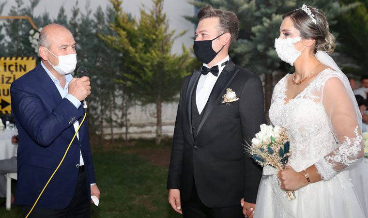 Koronavirüs tedbirlerine uydukları için düğün davetlilerine de teşekkür eden Soylu, "Bu salgın döneminde hem mesafeye hem maskelere dikkat edilmiş. Örnek bir düğün oldu. Tebrik ediyorum. Hayırlı, uğurlu olsun" ifadelerini kullandı.