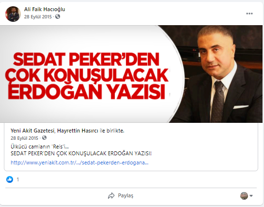 Yaptığı açıklamada Peker'e 'organize suç örgütü lideri' diyen Hacıoğlu'nun, geçmişte sosyal medya hesabı üzerinden Sedat Peker paylaşımları yaptığı ortaya çıktı.