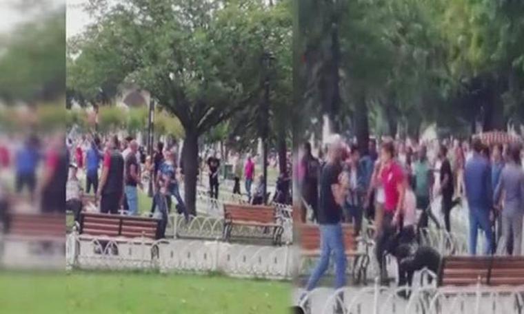 Sultanahmet Meydanı'nda iddialara göre turistlere tur satan iki grup arasında taşlı sopalı kavga çıktı. Polis ekiplerinin güçlükle yatıştırdığı kavga, kameralara yansıdı.