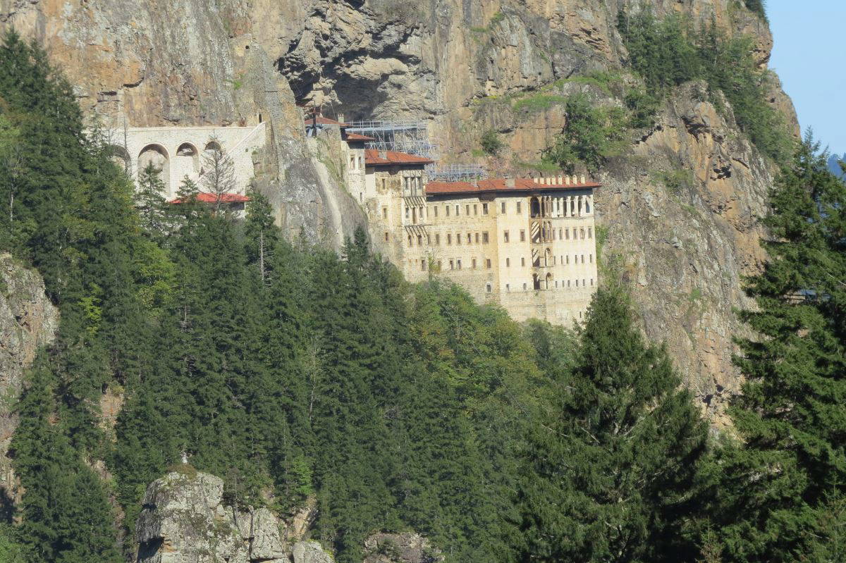 Maçka'da Karadağ'ın Altındere Vadisi'ne bakan eteğinde, yaklaşık 300 metre yükseklikteki ormanlık alanda kayaların oyulmasıyla yapılan Sümela Manastırı, halk arasında 'Meryem Ana' adıyla da biliniyor. Hakkında çeşitli rivayetler de bulunan ve kuruluşu bilimsel verilere göre 13'üncü yüzyıla uzanan tarihi manastırda, hizmet birimleri, misafirhane, mutfak ve ayazmanın dışında toplam 72 oda bulunuyor. 88 yıl aranın ardından, manastırda 2010 yılında binlerce kişinin katılımıyla düzenlenen ayini, Fener Rum Patriği Dimitri Bartholomeos yönetmişti.