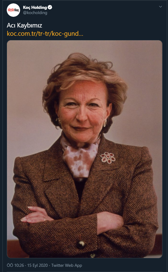 "Cumhuriyetimizin değerleriyle yetişmiş, gerek iş gerekse toplumsal hayatta başardıklarıyla Ülkemizin sanayi, eğitim, kültür ve sanat alanlarında gelişmesine önemli katkılar sunan, Topluluğumuzun kuruluş yıllarından 2010’a kadar çeşitli liderlik görevleri üstlenen, Koç Üniversitesi, Koç Okulu ve Türkiye Eğitim Gönüllüleri Vakfı’nın kuruluşuna öncülük eden Sayın Suna Kıraç’ı kaybetmenin büyük üzüntüsü içindeyiz.