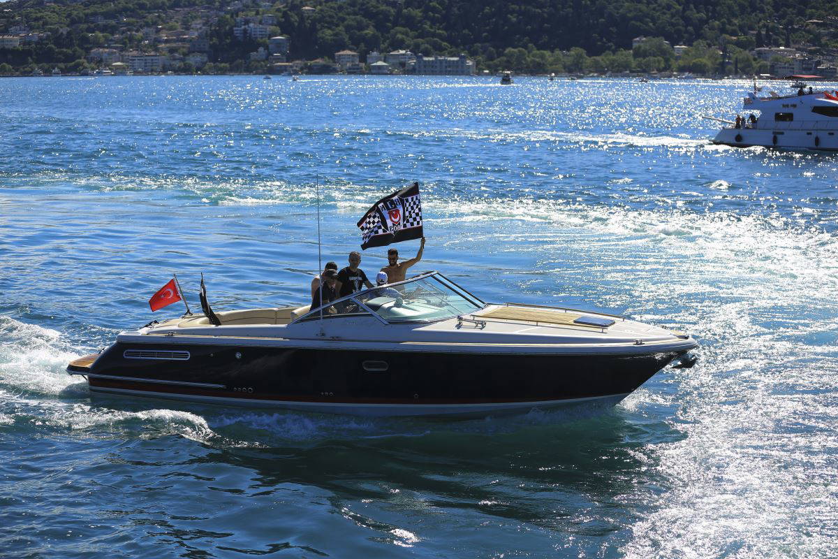 Tesislerden Vodafone Park’a deniz yoluyla hareket eden Beşiktaş’a denizde birçok tekne eşlik etti.