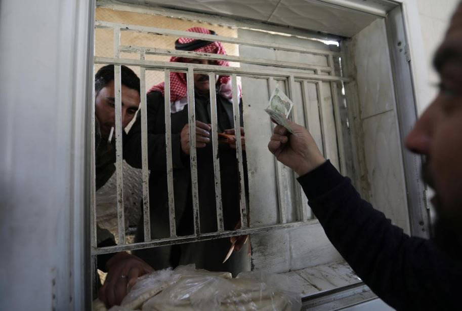 Türk Lirasının kullanımı Suriye’de gündelik hayatın içine girdi. Reuters’ın arşiv fotoğrafında Suriyeliler ekmek alırken TL kullanırken görülüyor.