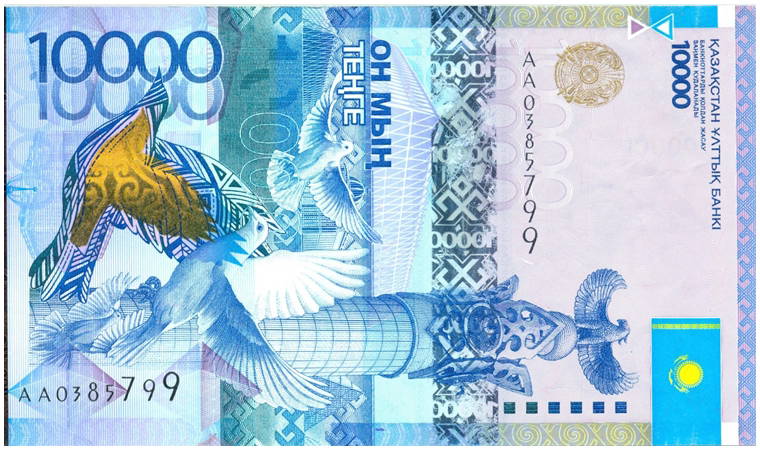 Kâğıt para ilk defa Moğollar tarafından basılmış. M.S. 6. yüzyılda Çin’de senet olarak ortaya çıkan kâğıt para 1279’a kadar dolaşımda kalmış. Kâğıt paranın üstünde, sahtekârlık yapacakların suçları için cezalandırılacağını belirten sert bir uyarı da bulunuyormuş. Bu arada taklit edilmesi en zor banknot yanı sıra dünyanın en güzel banknotu da seçilmiş Kazak tengesi olarak kabul ediliyor. Uluslararası Banknot Cemiyeti’nce (IBNS - International Bank Note Society) 3 yıl üst üste, 2011’de 10 bin, 2012’de 5 bin tenge ve 2013’te de bin tengelik banknot dünyanın en iyi banknotu ilan edildi. Tenge, dizaynı ile birlikte üzerinde oyma baskı, transparan özellikler, özel güvenlik ve performans özellikleri ile mürekkep, hologram ve eşsiz numaralandırma sistemi içeriyor. Banknotlar her yıl üzerindeki şekiller değiştirilerek yeniden basılıyor. Madeni paralar; 1, 2, 5, 10, 20, 50, 100 ve banknot olarak da 200, 500, 1000, 2000, 5000, 10 000 ve 20000 tenge hali hazırda tedavülde bulunuyor.