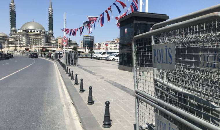 Taksim Meydanı'nda 1 Mayıs Emek ve Dayanışma Günü için bariyerler yerleştirildi.