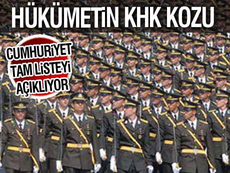 TÜMGENERALLER - Gürbüz Kaya (geçen yılki terfisi hükümet tarafından onaylanmadı- tutuklu), İsmail Serdar Savaş (temditli), Ahmet Yavuz (temditli - tutuklu), Salim Erkal Bektaş (temditli - tutuklu), Ali Erdinç (temditli), Bülent Dağsalı (temditli), Abdullah Dalay (temditli - tutuklu), İhsan Balabanlı (temditli - tutuklu), Alaeddin Örsal (temditli), Muharrem Mutlu Arıkan (temditli), Tahir Bekiroğlu, İhsan Uyar, Raşit Atila Onkök, Yüksel Öztekin, Berkay Turgut, Yaşar Bal, Musa Avsever, Ömer Bayraklı, Orhan Turfan, Yıldırım Güvenç, Mehmet Çetin, Selahattin Kısacık.
