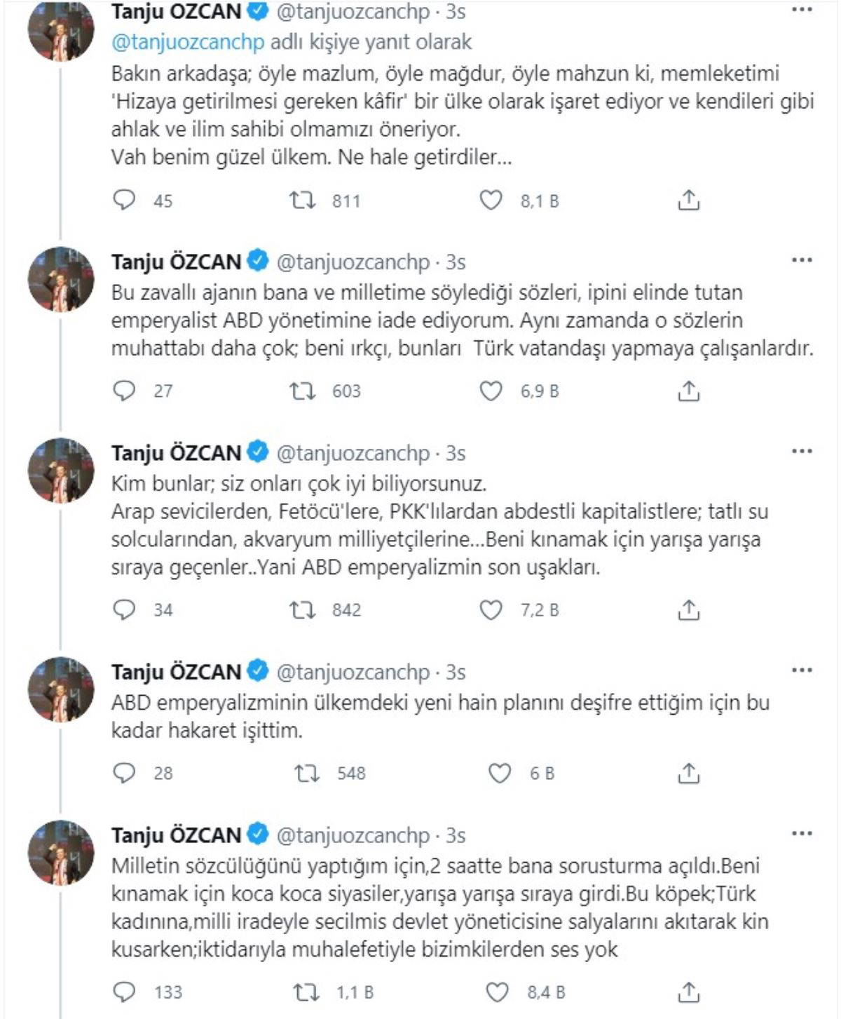 Saadat'a tepki göstermek için yayınladığı videolarda muhalefeti de hedef alan Özcan, şu ifadeleri kullandı: