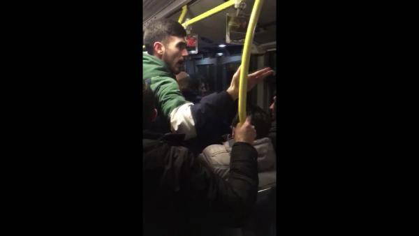 Bu sırada durakta bekleyen bir grup Yeni Malatyasporlu taraftarlar tezahürat yapınca, dolmak üzere bekletilen bir metrobüsün içindeki Fenerbahçeli bir grup taraftar “Burası Kadıköy, bağırmayınö diyerek dışarıya doğru tepki gösterdi. Çıkan tartışma kısa sürede tekmeli-yumruklu kavgaya döndü. Bazı taraftarların kemerlerini çıkararak metrobüse girmeye ve karşı gruba vurmaya çalıştığı, metrobüsün camlarına da vurulduğu görüldü. Metrobüsün açık kapısı önündeki kavga yaklaşık 4-5 dakika sürdü.
