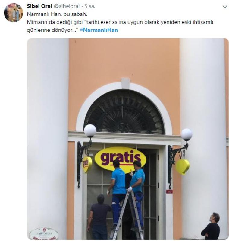 Tarihi Narmanlı Han’a bir kozmetik zinciri olan Gratis’in tabelası asıldı.
