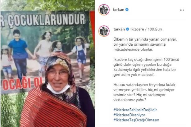 Tarkan'dan direnişle ilgili bir destek daha geldi. Taş ocağıyla ilgili geri adım atılmadığını belirten Tarkan, "Huuuu vatandaşının feryadına kulak vermeyen yetkililer, hiç mi gelmiyor sesimiz size? Hiç mi sızlamıyor vicdanlarınız yahu?" ifadelerini kullandı.