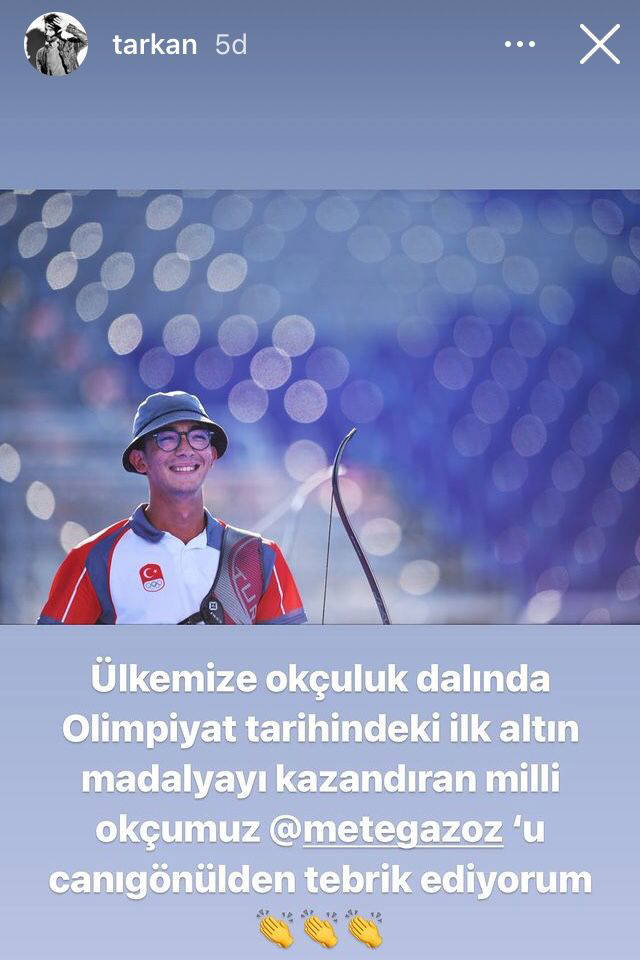 Türkiye'ye altın madalya getiren Mete Gazoz, sosyal medyada gündeme oturdu. Genç sporcuya tebrik mesajları yağarken, bir tebrik mesajı da ünlü sanatçı Tarkan'dan geldi.