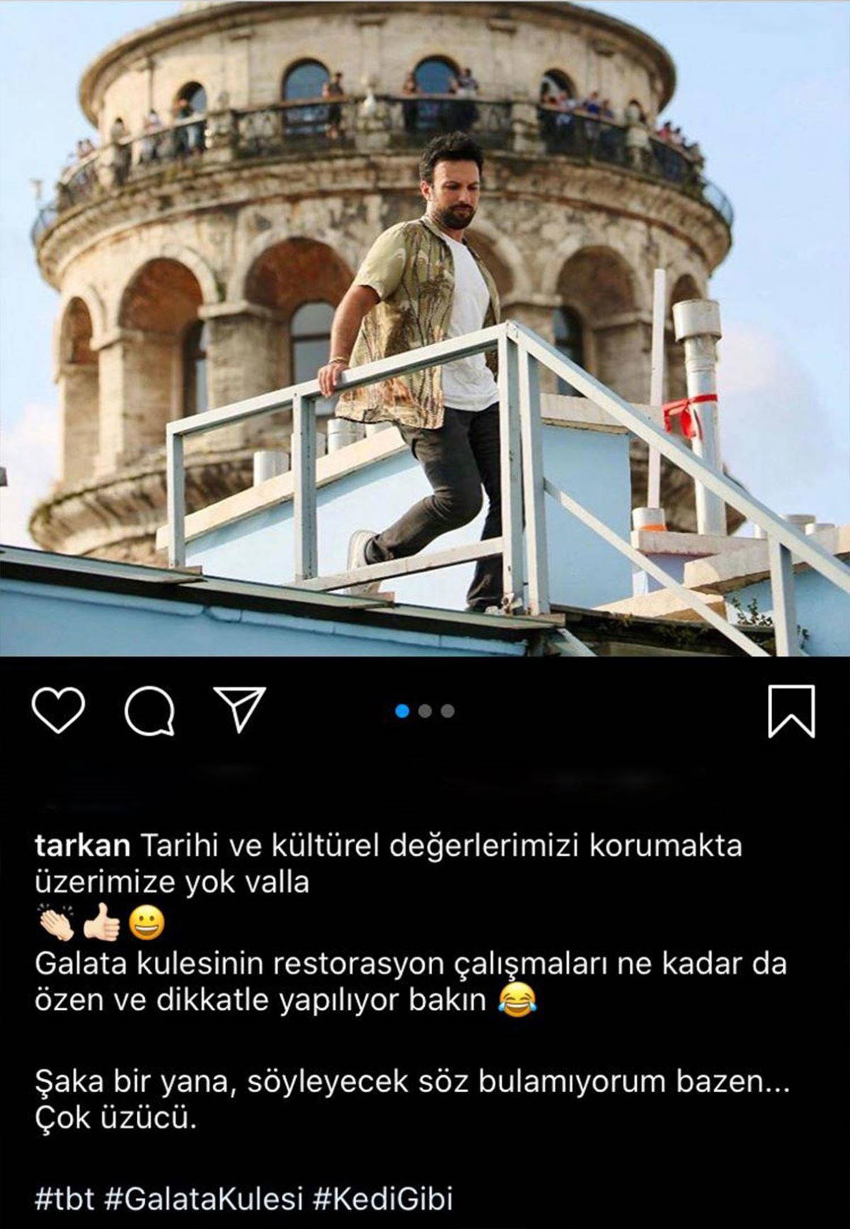 Ünlü şarkıcı Tarkan, Instagram hesabından Galata Kulesi'nin restorasyonu sırasında duvarlarının yıkılmasını eleştirdi.
