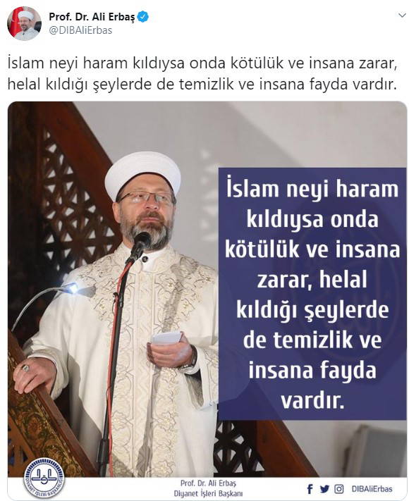 Diyanet İşleri Başkanı Erbaş, Ankara Hacıbayram Camii’nde okuduğu Cuma hutbesinde , “İslam zinayı en büyük haramlardan kabul ediyor. Lutiliği, eşcinselliği lanetliyor. Nedir bunun hikmeti? Hastalıkları beraberinde getirmesi ve nesli çürütmesidir bunun hikmeti” ifadesini kullanmıştı.