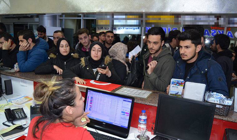Otobüs ve uçak bileti alabilmek için uzun kuyruklar oluşturan öğrenciler, 3 haftalık tatili ailelerinin yanında geçirmek istediklerini belirtti.
