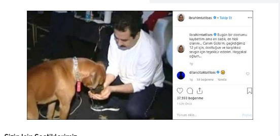 978 bin takipçisine köpeği Golo'nun vefat haberini duyuran İbrahim Tatlıses şu satırları paylaştı: