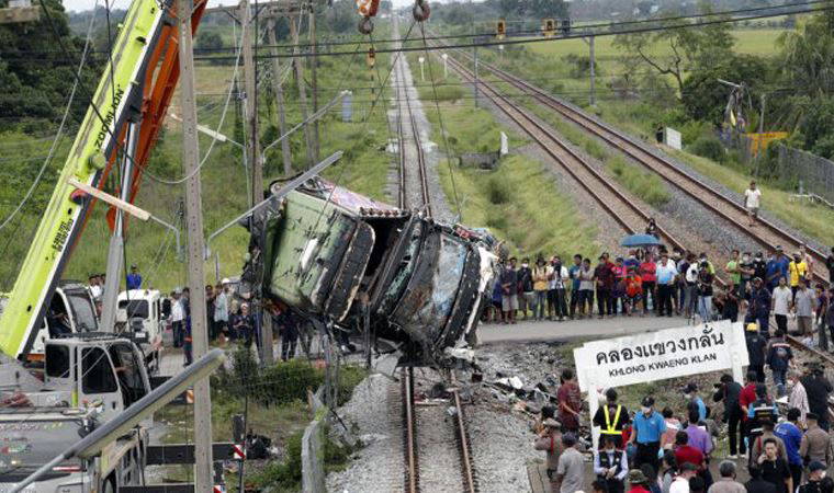 Tayland’ın başkenti Bangkok’un 50 kilometre doğusunda tapınak ziyaretine giden yolcuların bulunduğu bir otobüs ile tren çarpıştı. Chachoengsao eyaletinin Valisi Maitree Tritilanond, kazada en az 20 kişinin öldüğünü ve 29 kişinin yaralandığı belirtti.