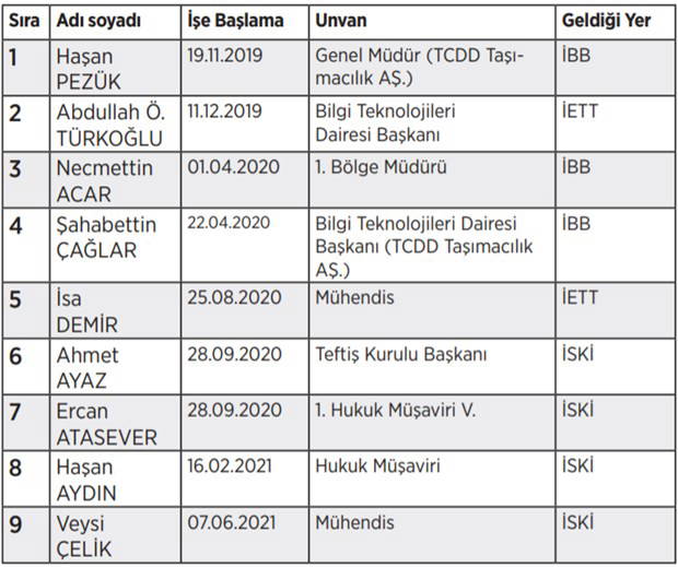 İBB ya da İBB’ye bağlı şirketlerden ayrıldıktan sonra TCCD’ye geçen tek isim Acar olmadı. Belediyenin el değiştirmesiyle iş yaşamına TCDD’de devam eden diğer sekiz isim şöyle sıralandı: