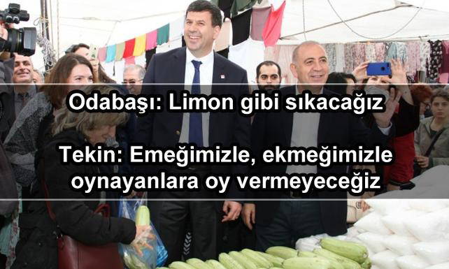 Esnafın ve Kadıköylülerin sorunlarından haberdar olduklarını, bunları çözmek için hep birlikte çalışmalar yürüteceklerini söyleyen Odabaşı, “Bildiğim tek şey, sorunu yaşayanların çözümü bildikleridir. O nedenle hem Kadıköy halkının hem esnafın hem de misafirlerin karşılaştıkları sorunları birlikte karar alarak çözeceğiz” dedi. 1989 seçimlerine de atıfta bulunan Odabaşı, “1989 da limonu sıkmıştık. 2019'da da inşallah limonu sıkacağız'' dedi. Odabaşı’yla birlikte çalışmalara katılan İstanbul Milletvekili Gürsel Tekin de, esnafla konuşmasında, ''Belediye başkan adayımız Şerdil Dara Odabaşı ile Salı Pazarı’nı dolaştık. Salı Pazarı sadece Kadıköylülerin alışveriş yaptığı bir pazar değil.