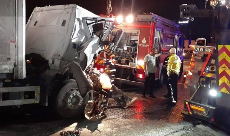 TEM Otoyolu Başakşehir mevkii Edirne istikametinde seyreden kamyon önünde seyreden kamyona arkadan çarptı.