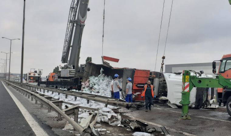 Kaza, TEM Otoyolu İstanbul istikametinde sabah saatlerinde meydana geldi. Mesut Demirgök yönetimindeki 39 EE 835 plakalı tonlarca toprak yüklü TIR, Anadolu Yakası istikameti Hadımköy mevkiine geldiği sırada henüz bilinmeyen bir nedenle önünde seyreden Burhan Bağsır yönetimindeki 34 PFE 27 plakalı otomobile çarptı. Çarpmanın etkisiyle otomobil savurulurken, TIR ise bariyerlere çarparak devrildi. Kazada TIR sürücüsü ile otomobilde bulunan Emine Bağsır ve Barış Bağsır ise hafif şekilde yaralandı. TIR'ın dorsesinde bulunan tonlarca toprak yüklü çuvallar ise yola savruldu. Kaza sonrası TEM Otoyolu Anadolu Yakası istikamet ulaşıma kapandı.