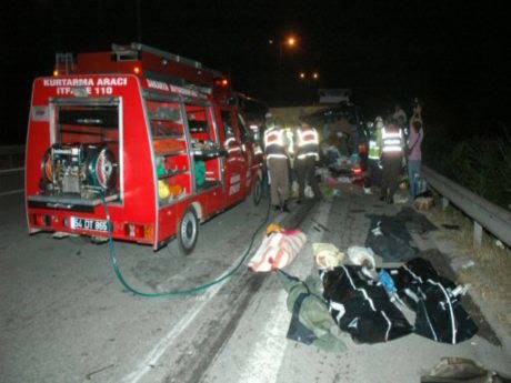 Alınan bilgiye göre, TEM Otoyolu'nda 34 FP 2894 plakalı minibüsün 71 DN 107 plakalı tırın 71 DS 697 plakalı dorsesine arkadan çarpması sonucu, minibüs şoförü Mustafa Arslan ve aynı araçta bulunan Elif Arslan (25), Ali Osman Arslan (2), İrem Arslan (7), Hasan Hüseyin Arslan (9), Şerefi Berra Arslan (1) Emine Irmak (15) ile Emirhan Irmak (9) öldü. Elif Karakaş (11), Medine Irmak (58), Ömer Hulusi Irmak (1) ve Mustafa Talha Derdiyok (12) yaralandı.