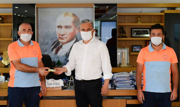 "Komşularımıza sesleniyorum. Yanlışlıkla attığını düşünen ve kendisinin olduğunu kanıtlayabilen komşumuza bunu teslim edeceğiz. Kıymetli çalışma arkadaşlarıma çok teşekkür ediyorum. Muratpaşa Belediyesi'ne yakışanı yapmışlar.