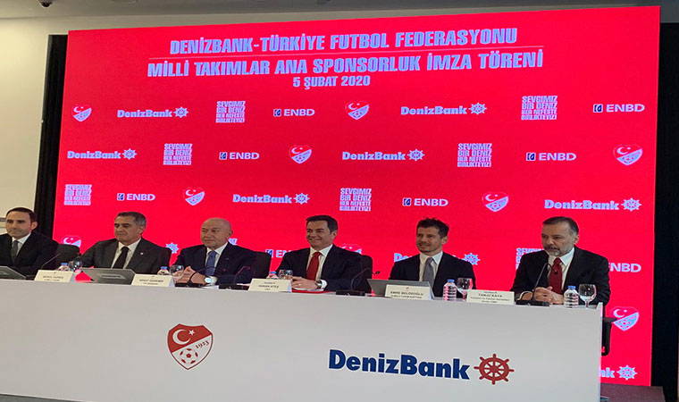 Türkiye Futbol Federasyonu Başkanı Nihat Özdemir, çok önemli bir iş birliğine imza atmanın heyecanını yaşadıklarını belirterek, "Türk sporuna değerli yatırımlarda bulunan DenizBank ile yeni bir yolculuğa çıkmaktan büyük mutluluk duyuyoruz. DenizBank, Avrupa Şampiyonası finallerinde mücadele edecek A Milli Takımımızın sponsorları arasına giriyor. Bu anlaşma vesilesiyle değerli katkıları ve bizlere duydukları güven için DenizBank'a çok teşekkür ediyoruz. Kendilerinin bu destekleri, Avrupa Futbol Şampiyonası finalleri öncesinde, bizleri daima gururlandıran A Milli Takımımızın gücüne güç katacaktır. İnşallah DenizBank ve tüm sponsorlarımızla birlikte, önümüzdeki turnuvalarda istikrarlı başarıyı yakalayıp büyük hedeflerimize ulaşacak ve ülkemize önemli mutluluklar yaşatacağız" dedi.