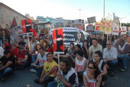 İstanbul Taksim Meydanı’nda toplanan TGS’liler, polisin Galatasaray Meydanı’na yürüyüş izni vermemesi üzerine Taksim Meydanı’nda oturma eylemi düzenledi.