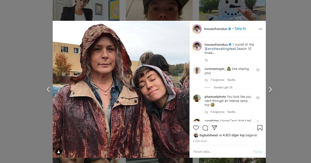 Screen Rant'in haberine göre Beatrice karakterini canlandıran Briana Venskus, Instagram hesabından yaptığı paylaşımda McBride’la birlikte kana ve iç organlara bulanmış biçimde görünüyor. Dizide bu taktik karakterlerin, zombilerin kendilerini fark etmesinin önüne geçmesi için kullanılıyor.