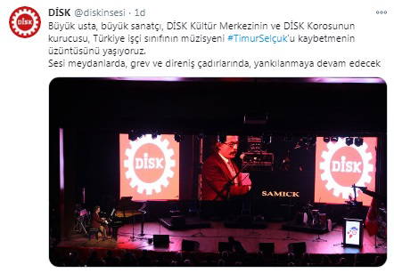 Büyük usta, büyük sanatçı, DİSK Kültür Merkezinin ve DİSK Korosunun kurucusu, Türkiye işçi sınıfının müzisyeni #TimurSelçuk'u kaybetmenin üzüntüsünü yaşıyoruz.