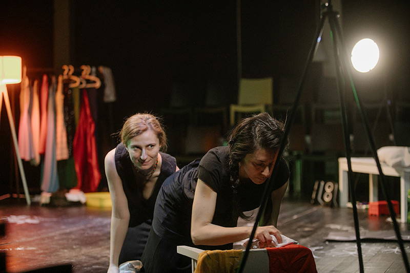 Bu konuyu biraz açmayı deneyelim… Hem Nezaket Erden hem de Pınar Güntürkün sahnede duygusal gerçekliğin yeniden inşası konusunda güçlü tekniklere sahip oyuncular olduklarını hemen belli ediyorlar. Bana soracak olursanız Nezaket Erden kullandığı tekniğin içinde daha fazla risk alan; Pınar Güntürkün ise bir nevi çapa görevi görerek sanki ipin ucunun kaçmamasını sağlayan oyuncu rolünü üstlenmiş. İzlediğim performanslardan bana geçen hissiyat bu yöndeydi en azından. Ayrıca Nezaket Erden’in kusursuz sayılabilecek oyunculuğunda duygu geçişlerini inanılmaz (bakın yine mucizenin alanına giriyoruz, kurtulamadık şu sözcük/kavramdan) bir hızda kotarması da izleyici açısından müthiş bir deneyim. Ve sahnedeki oyuncunun salya sümük ağladığı anlarda izleyicinin kahkahadan kırılırcasına gülmesi de hiç şüphesiz uyarlamanın, sahnelemenin ve dramaturjinin çok iyi yapıldığına delalet ediyor. Oyuncunun role kattığı enerji, içgörü ve ‘ruh’ da mutlaka ve mutlaka altı çizilmesi gereken bir unsur, zira “Tırnak İçinde Hizmetçiler” her şeyden fazla sahnedeki oyuncuların imzasını taşıyor. Öyle ki, yer yer tekrara düşüldüğü ve oyunun biraz gereksizce uzadığı hissine kapılsak da oyuncuların performanslarıyla bu duygu geri plana atılıyor ve kendimizi kaptırarak izlemeye devam ediyoruz.