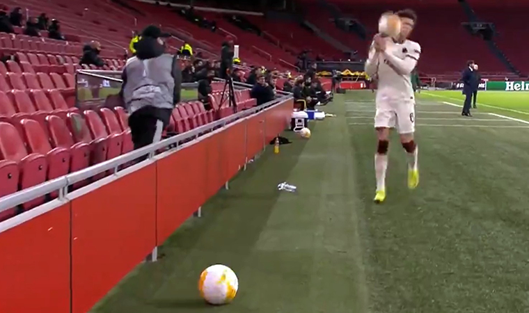 Calafiori’nin bu hareketi sonrası sinirlenen top toplayıcı, İtalyan futbolcunun kafasına doğru top fırlattı. Göğsüne çarpan topun ardından sarsıntı yaşayan Calafiori, kendini toparlayıp top toplayıcının üstüne doğru yürüdü. Yardımcı hakemin araya girmesiyle olay sona ererken, maçın hakemi Sergei Karasev, Romalı futbolcuya sarı kart gösterdi.