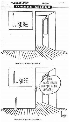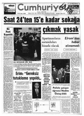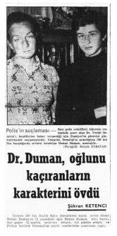 Gazetenin iç kargaşasında, 12 Mart’ın darbe sonrası solu hedef alan, can acıtan operasyonlarının bildik toplumsal dinamikleri sallamasından, haberciliğin olağan işleyişi de tepetaklak olmuştu. Evime ana yoldan girişteki Rahmi Duman Kliniği’nden, oğlu Hakan Duman’ın kaçırılması 16 Nisan günlü Cumhuriyet’in 1. sayfasında polisiye haber olmuştu.