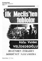 Aradan 12 Mart darbesi gündemiyle ilişkisi olmasa da, Hıfzı Veldet Velidedeoğlu’nun titizlikle, 23 Nisan’ın yıldönümü ile ilişkilendirilerek hazırlanmış, “İlk Meclis’ten tablolar” başlıklı araştırma dizisini atlayarak geçemeyiz. Ne yazık ki bu, hocanın Meclis’teki tanıklıklarına dayalı analiz dizisi, 12 Mart’ın Cumhuriyet gazetesini 10 günlüğüne kapatma cezası yüzünden, 6 günlük bölümü kapatmadan önce, kalan 3 günlük bölümü ise 8 Mayıs’ta açılışı sonrasında 10 gün olarak yayımlanacaktır. Velidedeoğlu Hoca, Meclis’teki görevlerinin çok ötesinde, bilgi birikimi, bağlı olduğu, savunduğu devrimcilik değerleri ile tanıklıklarını buluşturduğu dizide, “Liderlik gücü, iktidar ve halk”, “İlk Meclis’te halkçılık”, “Sovyetler’den gelen ilk haberler”, “Yerli kumaş tasarısı”, “İlk anayasa nasıl kabul edildi”, “Seçim sistemi tartışmaları”, “23 Nisan’ın ilk yıldönümünde, mukaddesatçılar, milliyetçiler çatışması” başlıkları altında açıklıyor.