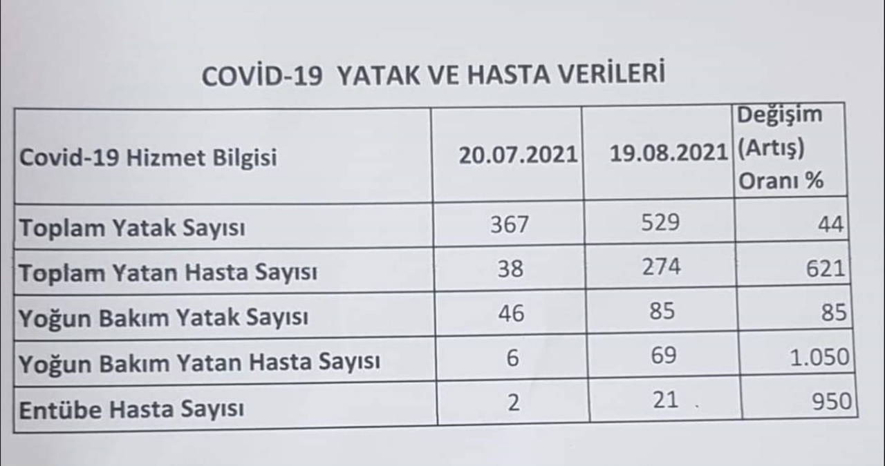 Hastanelerdeki yoğun bakım doluluk oranlarında ciddi artışlar olduğunu belirten İl Sağlık Müdürü Dr. Hakan Usta, “20 Temmuz’da 6 tane yatan hastamız varken 19 Ağustos'ta sayı 69’a çıktı. Ciddi bir artış söz konusu. Biz vakalardaki artış sayılarına göre diğer hastaların yoğun bakım ünitelerini ihtiyaç halinde kısıtlayarak Covid-19'a çeviriyoruz. Tam tersini de yaptığımız dönemlerimiz de oluyor. Gerekirse ek alanlarda yoğun bakım koşullarına yakın yerlerde de yoğun bakım hizmetini vermeye gayret ediyoruz. İhtiyaca göre yoğun bakım alanları açarak vatandaşın ihtiyacını gidermeye çalışıyoruz. Ama hem mekân ve hem personel olarak ciddi bir iş yükü ve ciddi sıkıntılar oluşturan bir süreç bu. Bir yerde bu elbet tıkanacak. Sınırsız bir güç, sınırsız bir mekân bulmak imkânsız. Herkesin üzerine düşeni yapması gerekiyor” diye konuştu.