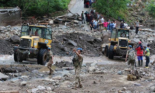 Trabzon'un Araklı ilçesi Çamlıktepe mahallesinde dün meydana gelen sel ve ardından HES borusunun patlamasıyla oluşan taşkın nedeniyle yaşamını yitirenlerin sayısı 7’ye yükseldi. Taşkından 8 köyün etkilendiğini bildiren Pakdemirli, bölgede ufak yağışların bile heyelanları tetikleyebileceğini belirterek bölge halkını uyardı.