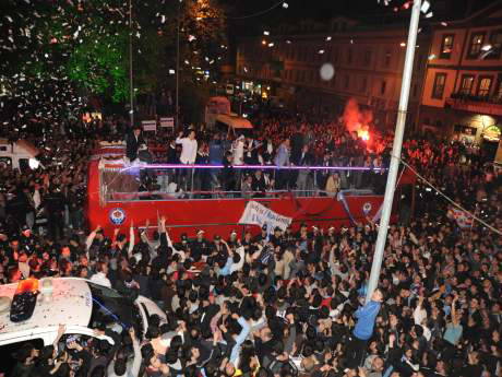 Daha sonra üstü açık bir otobüse binen bordo-mavili futbolcular, havalimanından ayrılarak kent turu atmak istedi. Ancak futbolcuları taşıyan otobüs, taraftarların aracın önünü kesmesi nedeniyle yaklaşık 1 saat süre sonra havalimanından ayrılabildi.