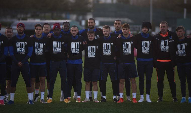UEFA Şampiyonlar Ligi’nde Paris Saint-Germain ile yapılan maçta Rumen 4. hakem Sebastian Coltescu’nun, Başakşehir Yardımcı Antrenörü Pierre Webo’ya karşı ırkçı söylemine tepki gösteren Trabzonsporlu futbolcular, İngilizce olarak ’No to Racism’ (Irkçılığa hayır) yazılı tişörtlerle antrenmana çıktı.