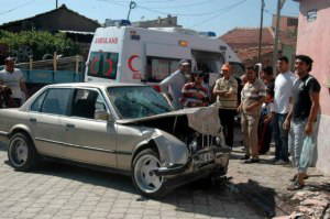 Manisa'nın Turgutlu ilçesinde, Ünal Ay (46) yönetimindeki 45 N 1922 plakalı otomobil, Kemalpaşa yolu Çöplük Altı mevkisinde Fahrettin Tayfur'un kullandığı 45 ZB 1868 plakalı minibüsle çarpıştı. Kazada, otomobil sürücüsü Ünal Ay sıkıştı. Aynı araçta bulunan Emine Ay (38), Sinan Ay (6), Yasemin Ay (11) ile Esra Yürüyen (11) de yaralandı.