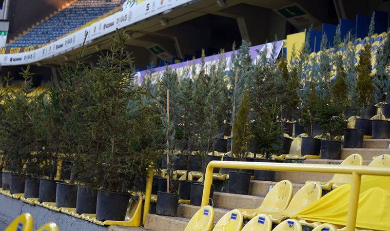 Fenerbahçe’nin Gençlerbirliği ile oynayacağı maç öncesinde tribünlerde ağaç fidanları yer aldı.