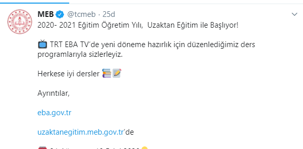 EBA TV canlı ders yayını, 31 Ağustos'ta yani yarın başlayacak ve 21 Eylül'e kadar devam etmesi öngörülen uzaktan eğitim dersleri nedeniyle gündemde. Milli Eğitim Bakanlığı, TRT EBA TV ders programını açıkladı.