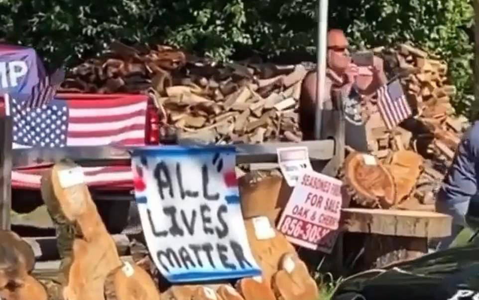 New Jersey’de toplanan bir grup, Floyd’un ölüme gittiği anları yeniden canlandırdı. Polis memurunun Floyd’a yaptığı gibi yerde yatan bir kişinin boğazına diziyle baskı uygulayan adam, bölgeden geçmekte olan protestocular aleyhine sloganlar attı.