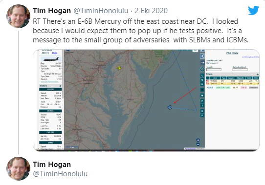 ABD gündemi, Başkanı Donald Trump'ın koronavirüse yakalanmasıyla sarsıldı.Testi pozitif çıkan Trump'ın açıklamasının ardından "Kıyamet Günü Uçakları" olarak adlandırılan E-6B Mercury uçakları ABD'den havalandı.