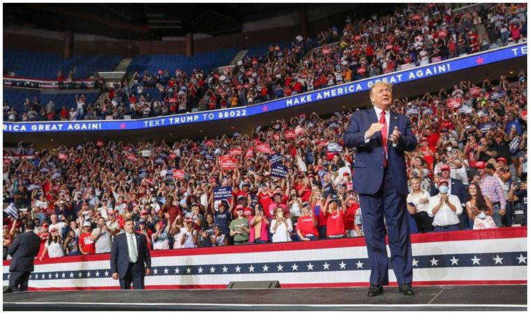 Cumhuriyetçilerin merkezi haline gelen Oklahoma’daki Tulsa’da bir miting düzenleyen Trump büyük hayal kırıklığına uğradı. Mitingden günler önce, “Mitinge katılanlardan bazıları korona olabilir” açıklamasını yapan Trump, 19 bin kişilik kongre merkezinin sadece üçte ikisini doldurabildi.