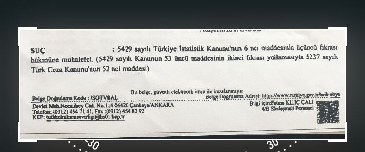 TÜİK yaptığı suç duyurusunda, Enagurup.org’un TÜİK’e bir alternatif olarak kamuoyuna sunulduğuna da işaret ederek, günlük 20 liradan az olmamak üzere adli para cezası uygulanmasını da talep etti.
