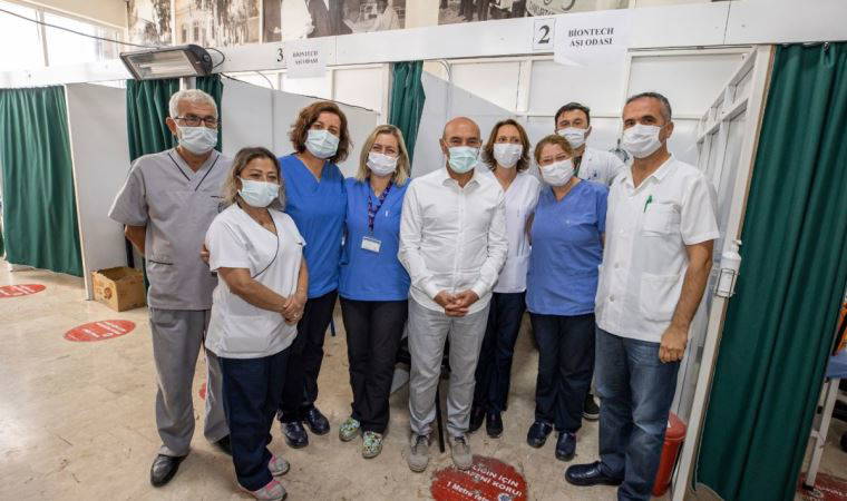 Başkan Soyer, 14 Haziran’da “Aşı Ol, Mavi İzmir İçin Umut Ol, Koruyucu Önlemlerini Sürdür” diyerek Mavi İzmir kampanyası başlattıklarını da hatırlatarak “Toplum Sağlığı Dairesi Başkanlığımız öncülüğünde gerek yüz yüze doğrudan eğitimlerle gerekse uzaktan eğitim modellerimizle yurttaşlarımızın COVID-19 ve aşı hakkında aklına takılan soruların yanıtlarını doğru ve güvenilir adreslerden alması için kılavuzluk ettik. Türkiye’deki vaka oranını 100 binde olarak gösteren risk haritasında İzmir’i 10’un altına düşürerek maviye boyamayı, bu konuda da öncü olmayı hedefliyoruz. Düşük riskli şehirler arasına girelim ki, önlenebilir can kayıpları son bulsun. Esnafımız kepenk kapatmasın. Çalışanlarımız sağlıkla işlerini sürdürebilsin. Çocuklarımız okullarında eğitim alsın. Karantina ve kısıtlama uygulamalarına gerek olmasın. İ htiyacı olan vatandaşlarımız hizmetlere rahatça ve sorun yaşamadan ulaşabilsin. Birbirimizi ve geleceg^imizi korumak için ‘Tedbirli ol, aşı ol, Mavi I·zmir’de özgür ol’ diyoruz” şeklinde konuştu.