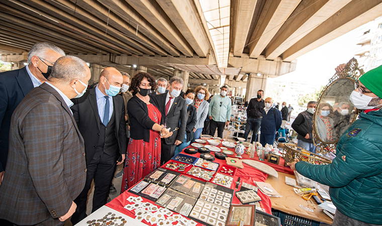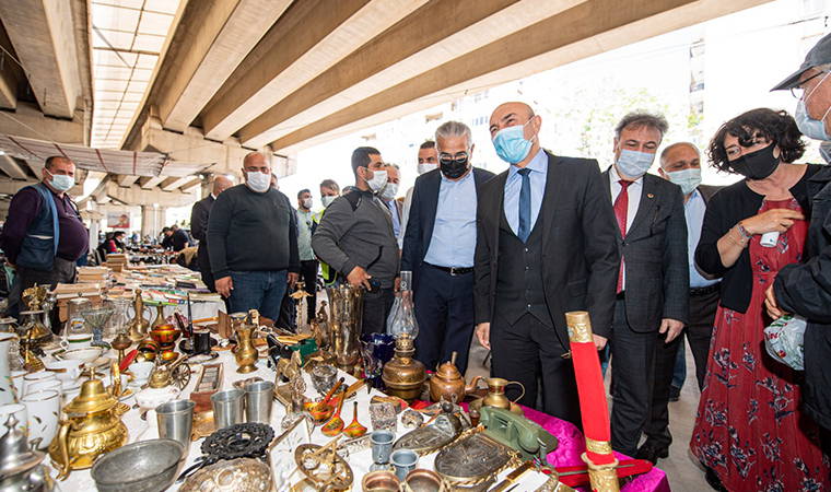 Dr. Mustafa İduğ iki yıldır kapalı olan pazar yerinin artık haftanın beş günü açık olduğunu ve kent ekonomisine katkı sağladığını söyleyerek Başkan Tunç Soyer’e desteği için teşekkür etti. Başkan Tunç Soyer, “Esnafa destek olmak için elimizden gelen ne varsa yapmaya hazırız. Onların yüzü güldüğü zaman memleketin huzuru, sağlığı yerine geliyor. Elimizden geldiği kadar destek olmaya ve sahip çıkmaya devam edeceğiz. Buradaki ürünlerin hepsi el emeği göz nuru. Yüzlerce yıl öncesine de giden var, ince ince titizlikle toplanmış objeler de. Her birinin başka bir anısı bulunuyor. O nedenle ikinci el pazarı çok kıymeti. Biz de her zaman destek çıkmaya devam edeceğiz” diye konuştu.