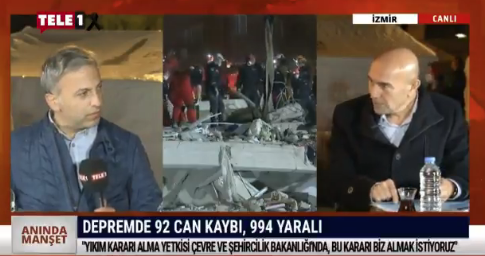 Cumhuriyet Gazetesi Ege Bölge Temsilcisi Tuncay Mollaveisoğlu, 6,6 büyüklüğündeki depremin vurduğu İzmir'de depremzedelerin kaldığı çadırların bulunduğu alanda İzmir Büyükşehir Belediye Başkanı Tunç Soyer’e son gelişmeleri sordu. 200 binin üzerinde yurttaşın çadırlarda kaldığını açıklayan Soyer, Biz İzmir dijital platformu üzerinden destek paketilerinin büyük ilgi gördüğünü, 24 saatten kısa sürede 6 bin 400 uyku tulumunun yardımseverler tarafından alınarak depremzedelere teslim edildiğini açıkladı.
